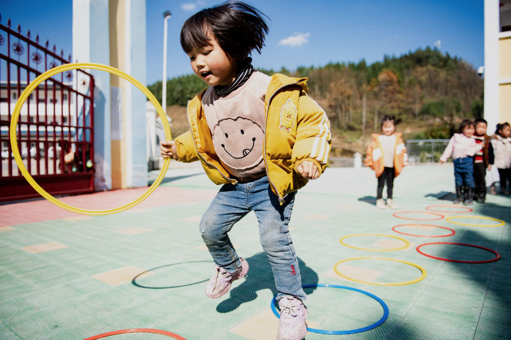 云南省鎮雄縣以古鎮巖洞腳村幼兒園的孩子在操場上玩耍(2020年11月11日攝)。新華社記者 王冠森 攝