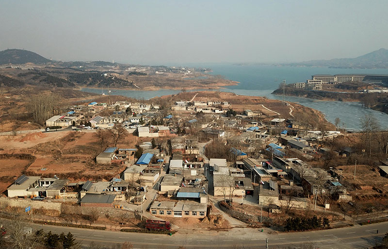這是2021年2月9日拍攝的河北省平山縣西柏坡鎮北莊村景色(無人機照片)。新華社記者 楊世堯 攝