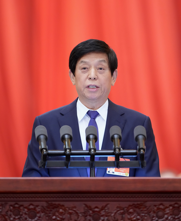 3月8日,全國人大常委會委員長栗戰書向十三屆全國人大四次會議作《全國人民代表大會常務委員會工作報告》。新華社記者 劉彬 攝