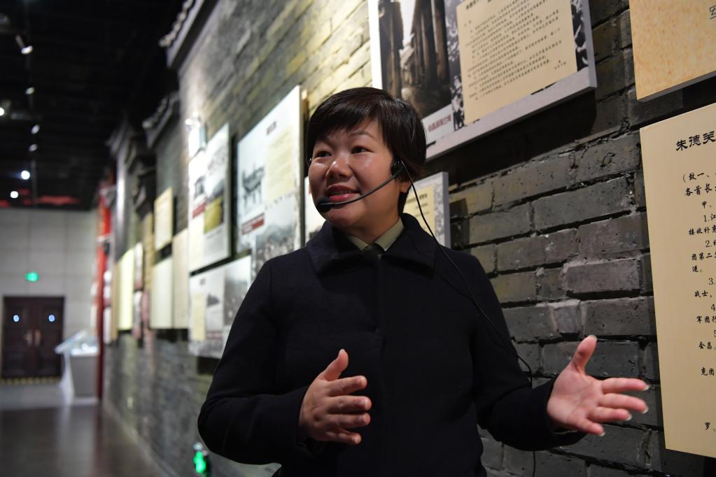 在中央紅軍長征出發紀念館,副館長鐘敏正在給參觀的游客介紹長征的歷史(4月6日攝)。新華社記者 彭昭之 攝