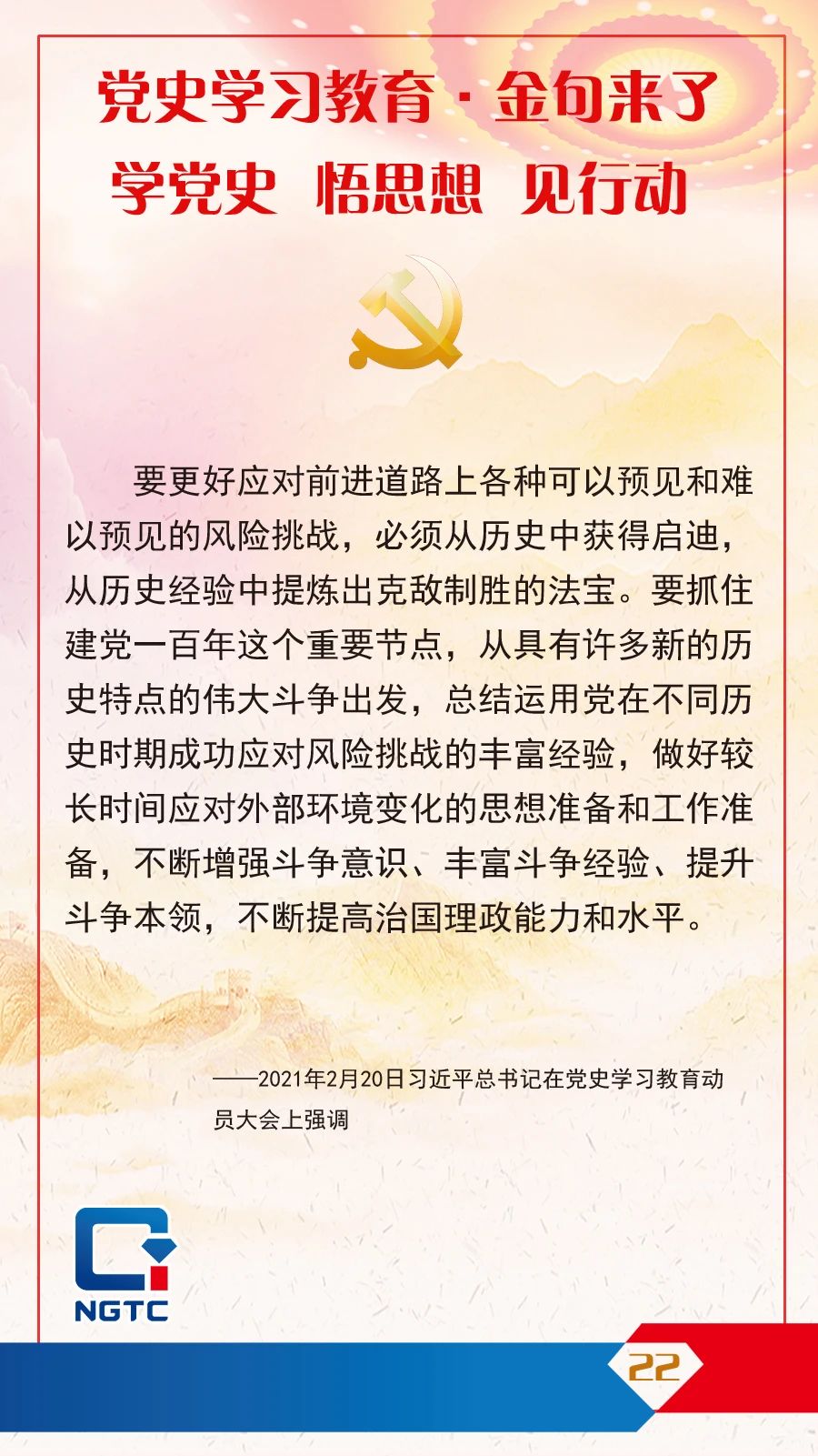 黨史學習教育·金句來了丨要更好應對前進道路上各種可以預見和難以預見的風險挑戰,必須從歷史中獲得啟迪,從歷史經驗中提煉出克敵制勝的法寶