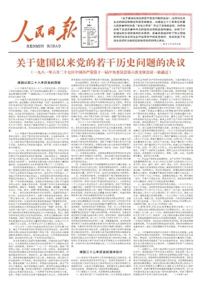 1981年6月27日,黨的十一屆六中全會一致通過了《關于建國以來黨的若干歷史問題的決議》(以下簡稱《決議》)。