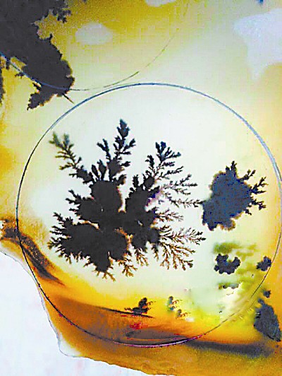 黃龍玉草花料豐富的色彩、美麗的圖案和深遠的意境,是怎么形成的呢?肖養杰告訴記者,初期大家都以為是真正的水草鉗入了礦物層,經過億萬年的地質變化,與這些礦物融為了一體。直到后來,礦物學家介入后,業界才知道這是一個誤會。