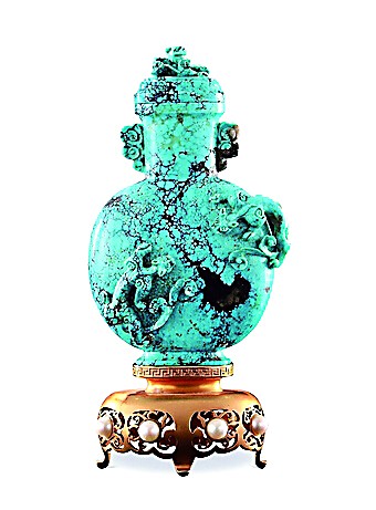 其次要注意完整性。綠松石的完整性越好,價(jià)值就越高,保值升值的潛力也就越大。如果有明顯的缺陷,包括天然的瑕疵和人為的劃痕、磕碰等,則會(huì)影響其價(jià)值。再次要注意雕工。設(shè)計(jì)合理、雕工精湛的雕件往往比素料價(jià)值高,如果又是出于某位名家之手,則更具升值潛力。