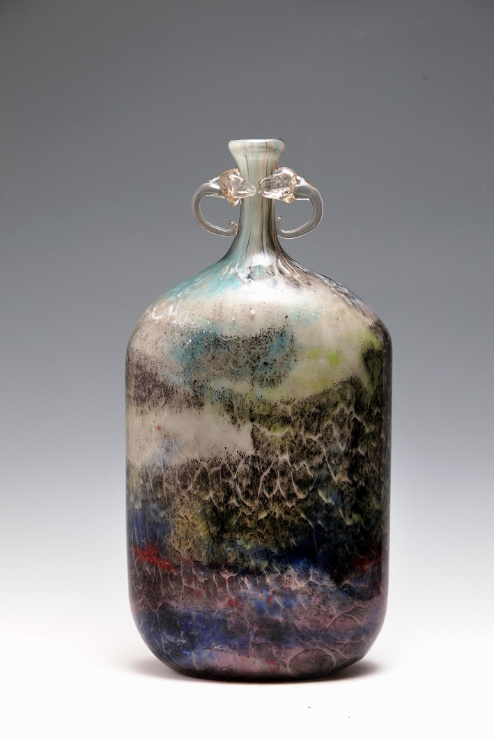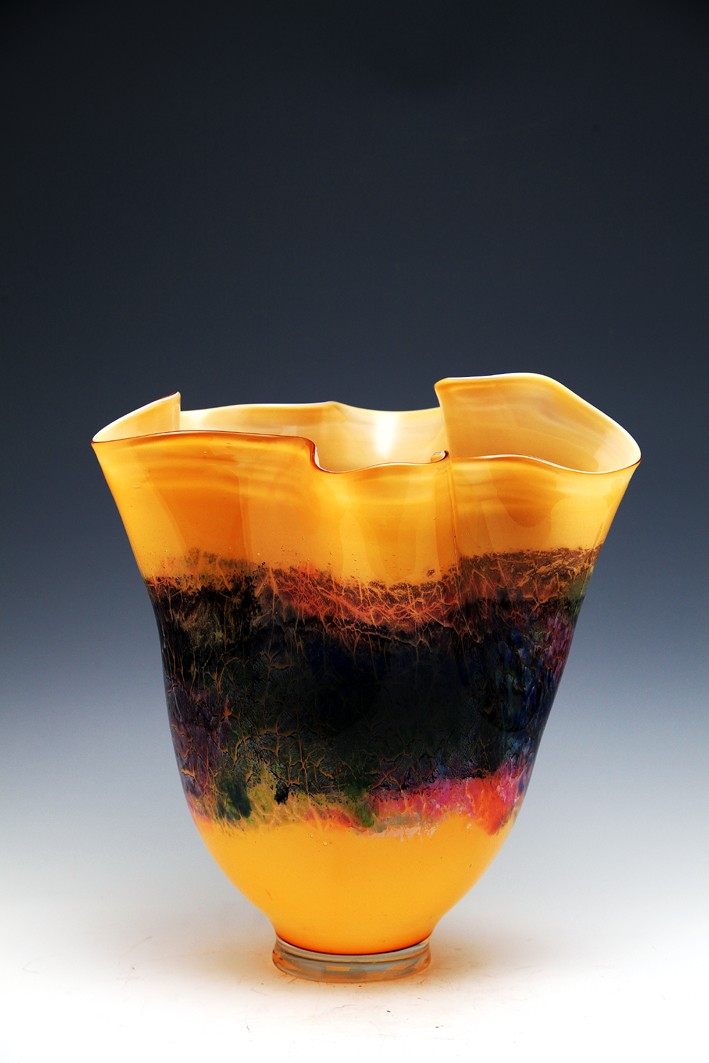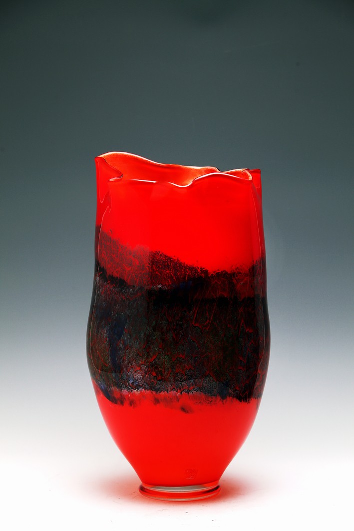 琉璃熱成形,是一種技與藝高度融合的藝術。石英砂在1400攝氏度下融化,出爐后四五分鐘之內便凝固,藝術家就要在這么短的時間之內,為頑石賦予生命,把流動的色彩定格成云裳霓影。