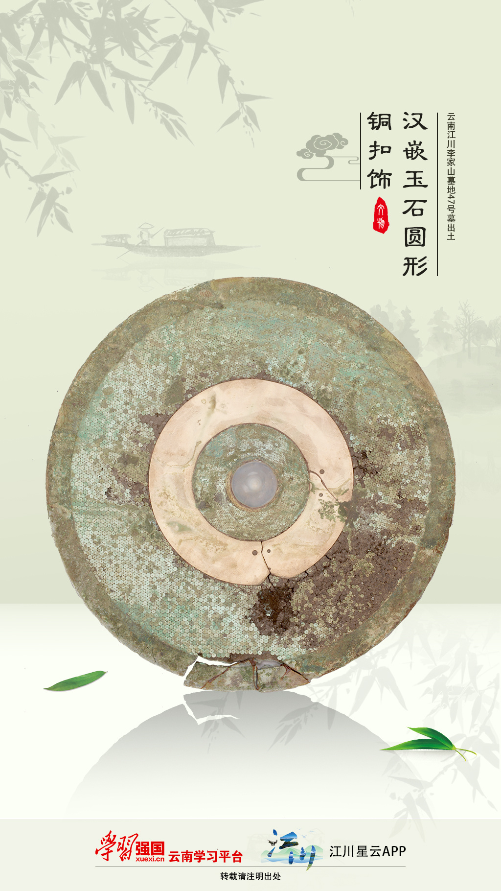 云南玉溪江川區:滇物古跡·漢嵌玉石圓形銅扣飾