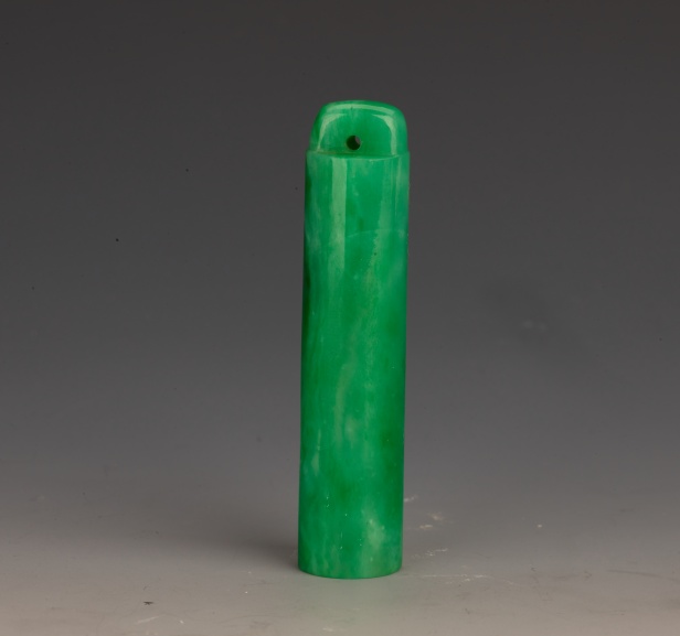 清·翡翠翎管,長7.2厘米,直徑1.6厘米。