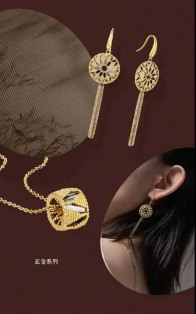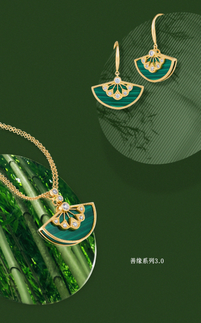竹系列,以中華文化中的竹節為設計元素,代表著獨立、自主、平等的新時代俠女精神;頑石系列,靈感來源于“女媧補天”中具有靈性且能量巨大的五色石,用黃金打造成一塊塊“頑石”,寓意即使自己生而渺小,卻也努力在平凡世界里閃著光;善緣系列,以扇承善,廣結善緣,為己而飾,盡善盡美;玄金系列,西方教堂的窗花遇上中式對稱美學,傳統累珠工藝碰撞新式電鍍黑金,文化與古今的碰撞融合簡約而不平凡。