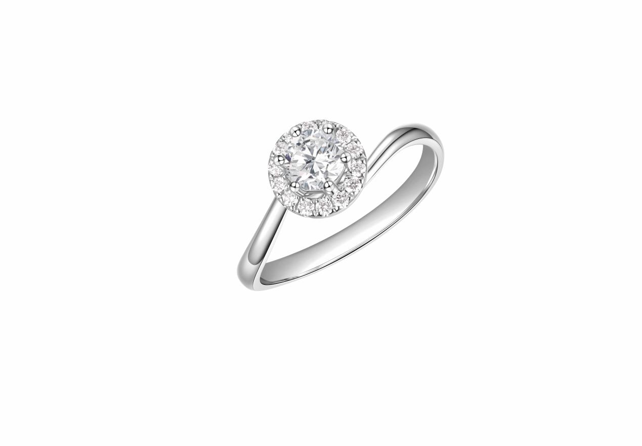“芳華”鉆戒,簡潔鏤空的花瓣形六爪鑲嵌,襯托美鉆的耀目光芒,象征著女性如花朵盛開,燦爛輝煌。