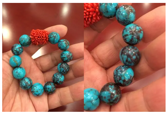 美國比斯比綠松石,巧克力色的鐵線是該礦綠松石的標志(拍攝:鄧謙)