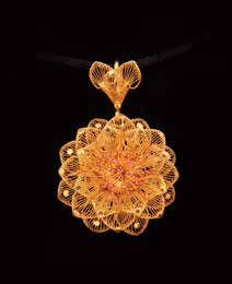 作品:18K黃金細工牡丹吊墜 作者:杜建毅花絲金工手工藝大師