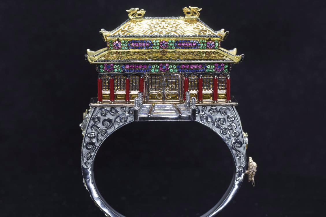 設計師運用建筑元素,規整的集合形加上修飾性的細節,令首飾給人以體量感放大的視覺效果。