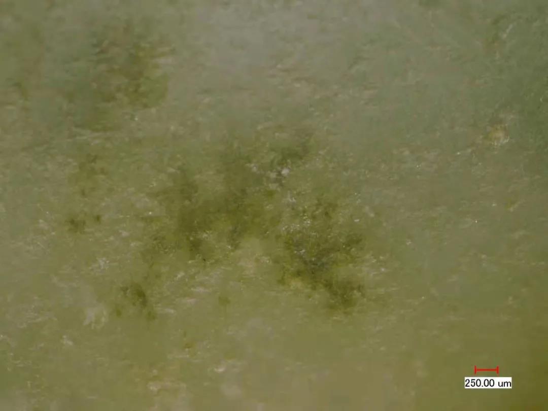 少部分和田玉山料里面也會有“水草沁”,切記不可盲目下結論。