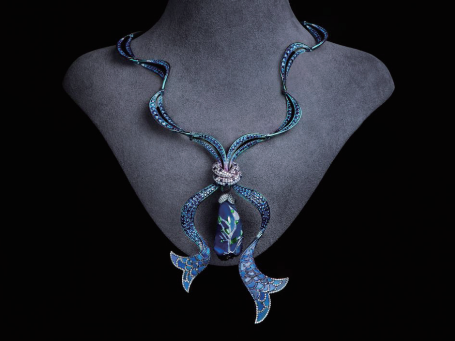色彩的漸變可以令珠寶首飾具有豐富的變化,塑造出生動(dòng)、柔軟的立體感,也可以令作品更具仿真效果。寶石由于其所含微量元素不同等原因會(huì)產(chǎn)生細(xì)微的顏色差異,這就令首飾色彩產(chǎn)生漸變成為可能。