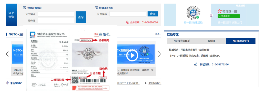 珠寶國檢(NGTC)官網(www.687789.cn)證書查詢專欄截圖