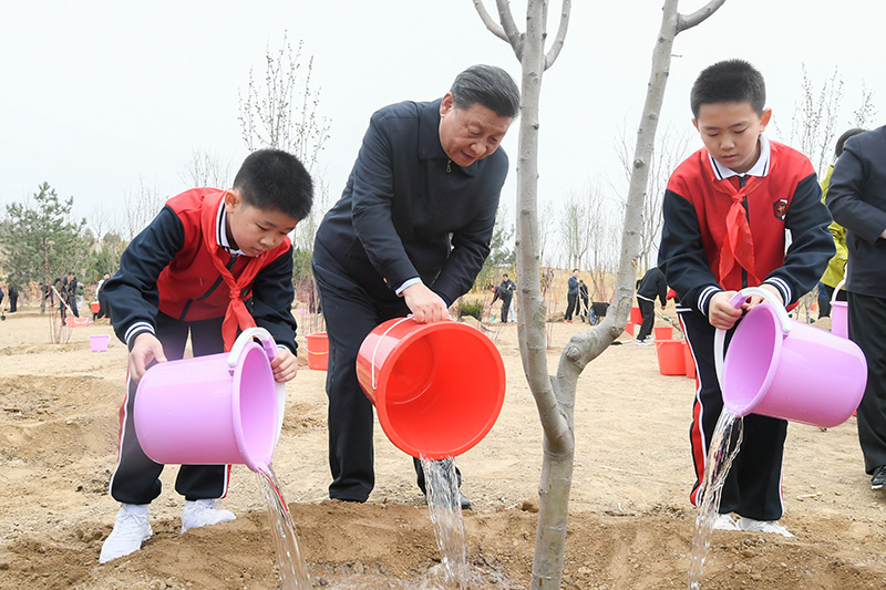 習(xí)近平在參加首都義務(wù)植樹活動時強(qiáng)調(diào):倡導(dǎo)人人愛綠植綠護(hù)綠的文明風(fēng)尚 共同建設(shè)人與自然和諧共生的美麗家園