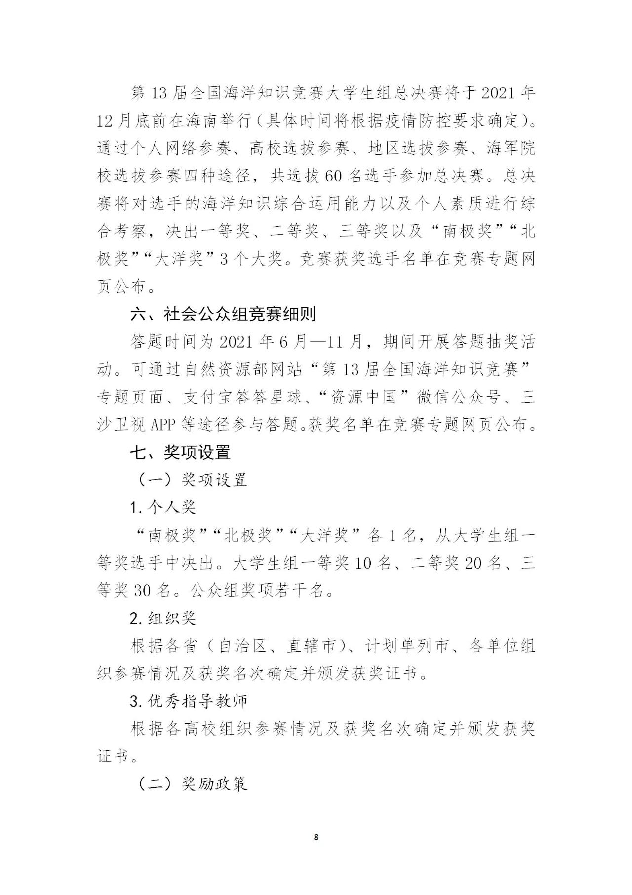 自然資源部辦公廳 共青團中央辦公廳 海軍政治工作部宣傳局關于開展第13屆全國海洋知識競賽活動的通知
