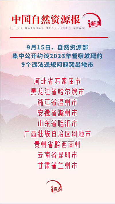 自然資源部集中公開約談2023年督察發現的9個違法違規問題突出地市