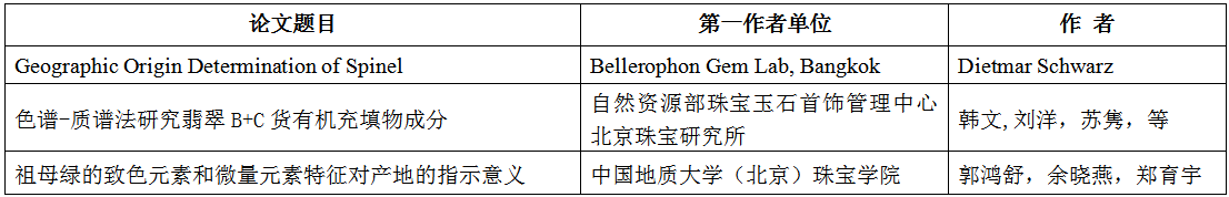第14屆中國國際珠寶首飾學術交流會論文集優秀論文名單