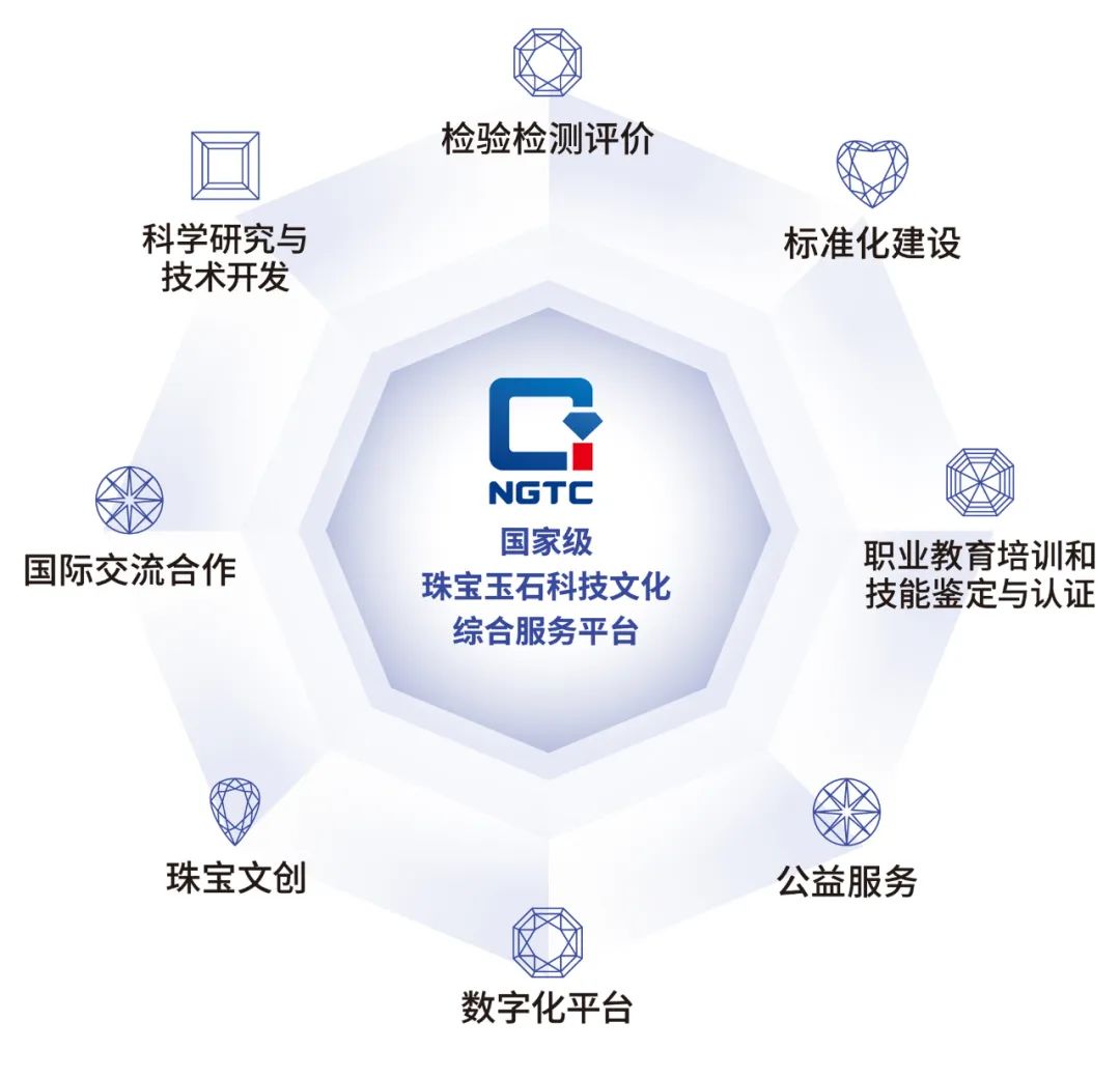 珠寶國檢集團業務涵蓋檢驗檢測評價、科學研究與技術開發、標準化建設、國際交流合作、職業教育培訓和技能鑒定、珠寶文創、公益服務及數字化平臺。珠寶國檢集團秉承堅持真理、堅守使命、對黨忠誠、勇于擔當、求真務實、守正創新的國檢精神,堅守做好國檢人、建強國家隊,服務珠寶行業高質量發展,維護消費者合法權益的使命,集團以數字化、智能化、品牌化、國際化為發展方向,以管理一流、技術一流、服務一流、文化一流為發展目標,以數字化轉型、智能化提升、融合式發展為發展路徑,著力實施科技創新驅動戰略、標準化戰略、數智化轉型戰略、職業教育產業化戰略、文創戰略、人才支撐戰略,為珠寶文創產業的健康發展提供全方位保障。
