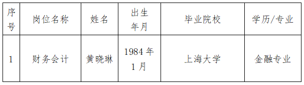 按照國家珠寶玉石首飾檢驗集團有限公司招聘工作方案要求,經過發布招聘公告、資格審查、面試、體檢等程序,經黨委會議研究,擬聘用黃曉琳同志為財務資產部工作人員,現予以公示。
