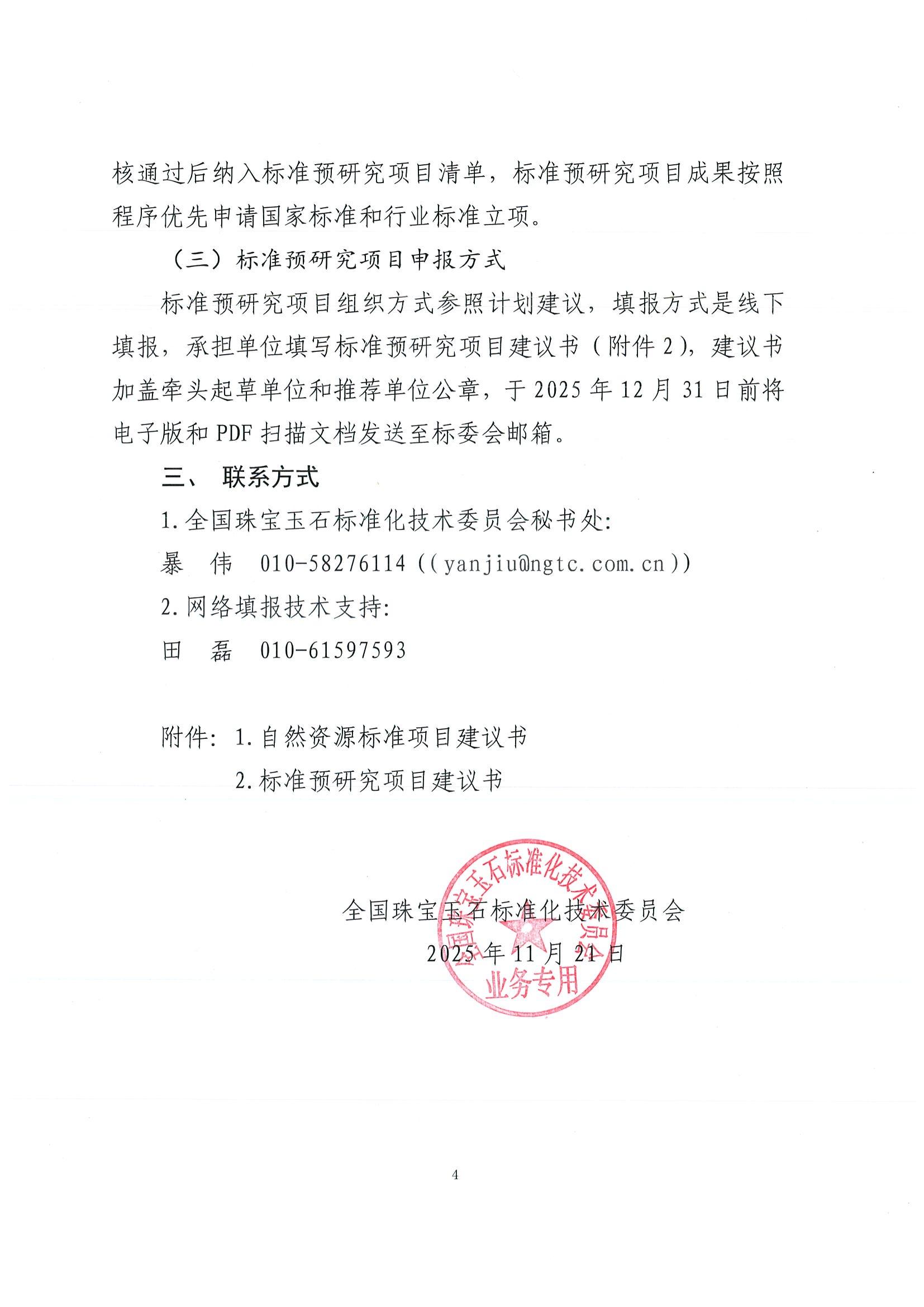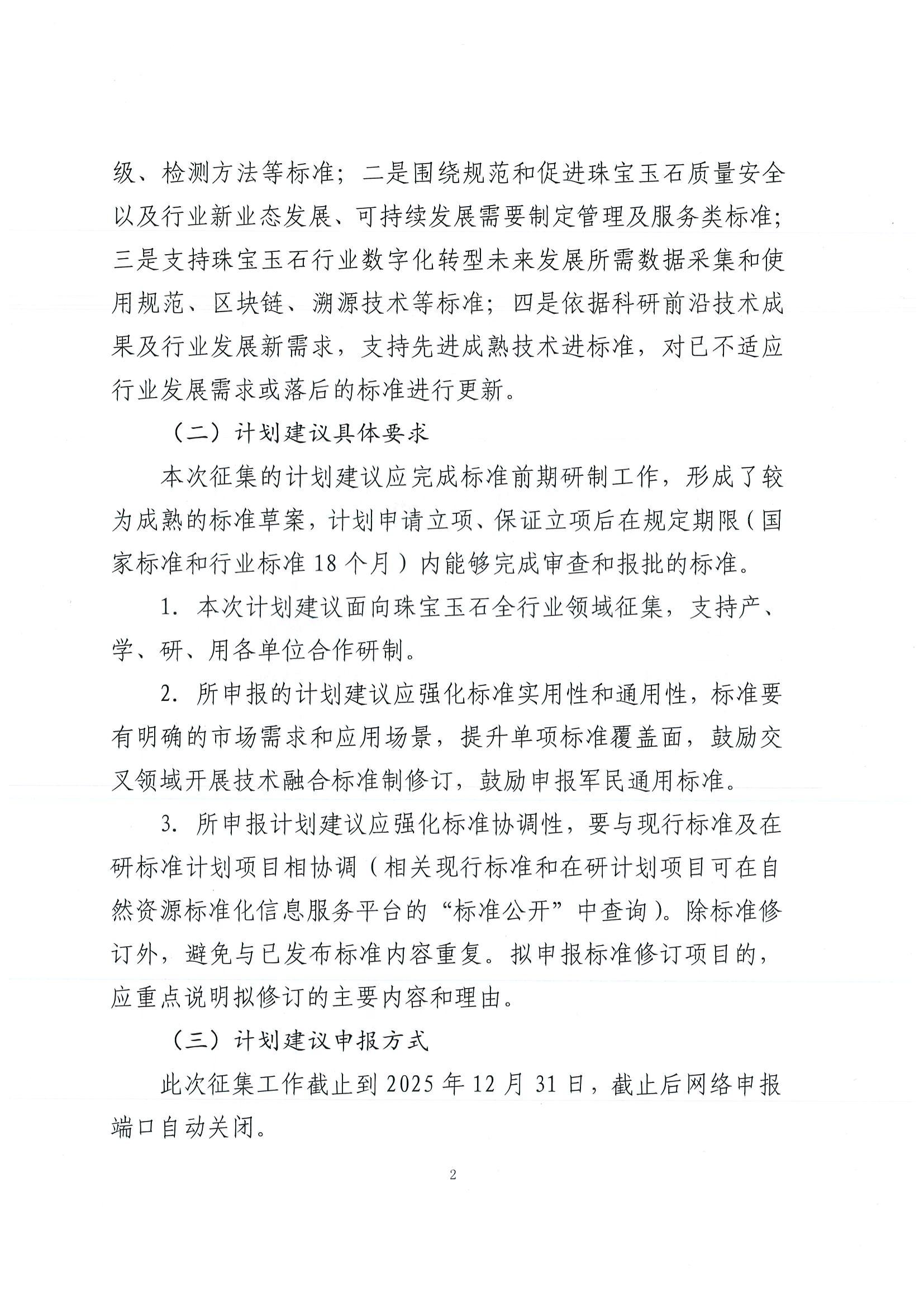 關于征集2026年度珠寶玉石標準制修訂工作計劃建議的函