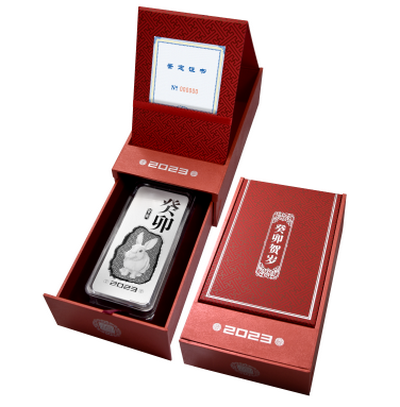 癸卯(兔)年發(fā)行的賀歲銀條規(guī)格共計六種:1,000克、500克、200克、100克、50克和15克,最大發(fā)行量分別為600條、1,500條、3,000條、21,000條、36,000條和10,000條,成色均為99.9%。本套銀條在延續(xù)經(jīng)久不衰的生肖主題的同時,秉承一貫的設(shè)計和工藝風(fēng)格,采用鏡面、浮雕、噴砂等先進工藝,線條細膩、層次分明,既具有收藏投資價值,又具有藝術(shù)觀賞價值,是一款值得入手的藝術(shù)藏品。