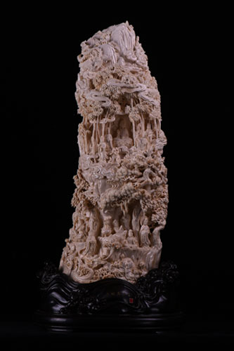 猛犸牙雕作品《山水有禪音》