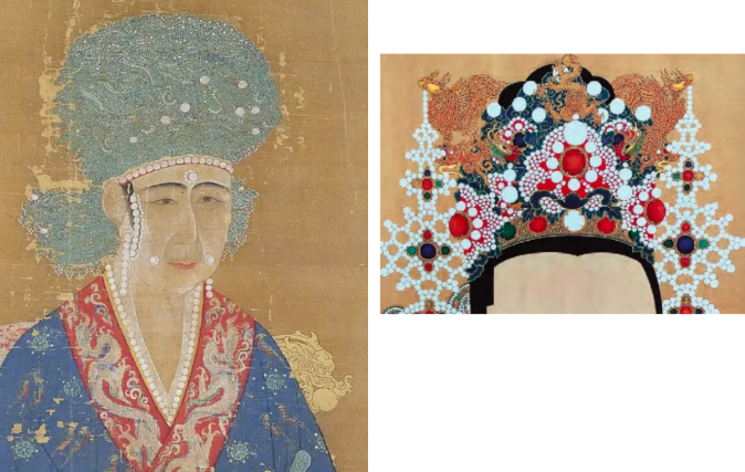 在宋仁宗皇后的畫像里,白色的珍珠在她的冠飾和面部裝飾中都處在顯著位置,可見當時流行用珍珠來襯托貴族女性高貴的身份、高尚的品格和優美的女性感,也可見在當時珍珠代表著一種時尚。