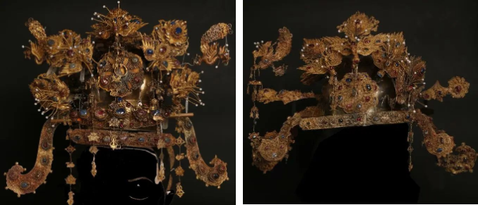 貴州省博物館館藏兩頂明朝的金龍鳳冠,這兩頂冠飾由中國文物遺產研究院和貴州省博物館聯合進行修復,我也參與其中。