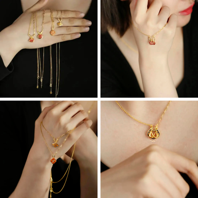 《兔年圖什么》是第六屆招金設(shè)計(jì)大賽“生肖設(shè)計(jì)大獎(jiǎng)”的獲獎(jiǎng)作品,由設(shè)計(jì)師陸靖婷設(shè)計(jì)。該系列產(chǎn)品將兔子與平安鎖、雙錢(qián)結(jié)、葫蘆等中國(guó)傳統(tǒng)文化元素相融合,并使用琺瑯配色,通過(guò)生肖兔與國(guó)潮文化的碰撞,傳達(dá)對(duì)美好生活的追求與向往。